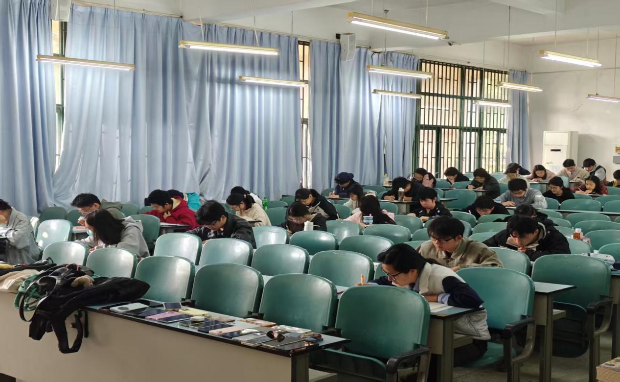 此次模拟考试从试卷命题、考场布置到时间把控均还原真实考试环境。考试现场,考生们有序入场,自觉将电子设备交由工作人员统一保管,答题过程中专注认真、奋笔疾书,展现出良好的备考状态与纪律意识。